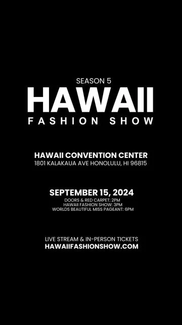 We're thrilled to extend a special invitation to Season 5 of the Hawaii Fashion Show, happening on September 15, 2024, at the prestigious Hawaii Convention Center.